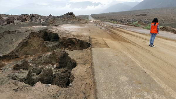 Ruta B-710 hacia Paposo: Transitable con precaución, pues en el sector de Cuesta Paposo hay corrida de agua y desprendimientos laterales.