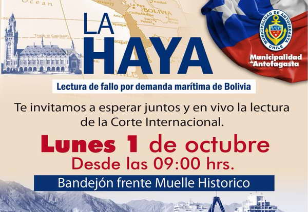 Una invitación abierta a toda la comunidad realizó la alcaldesa Karen Rojo para seguir en vivo y en directo la transmisión del fallo que pronunciará la Corte Internacional de la Haya, el próximo lunes 1 de octubre, en relación a la demanda boliviana en su interés por lograr un acceso soberano al mar, obligando a nuestro país a negociar un acuerdo para alcanzar este fin.