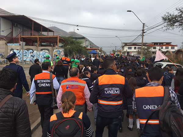 En la oportunidad, las autoridades encabezadas por el Intendente Regional, Arturo Molina; el Director Nacional de ONEMI, Ricardo Toro; su par regional, Ricardo Munizaga; y el Alcalde de Tocopilla, Luis Moyano; junto a otros integrantes del Sistema Regional de Protección Civil, participaron junto a la comunidad en el proceso de evacuación.