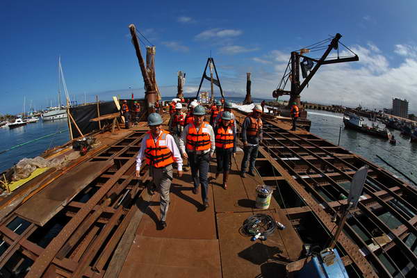 La monumental obra a cargo de la Dirección de Obras Portuarias fue visitada por el Ministro de Obras Públicas, Alberto Undurraga, quien constató un avance de 70% del exembarcadero, que se espera, culmine totalmente en diciembre de este año.