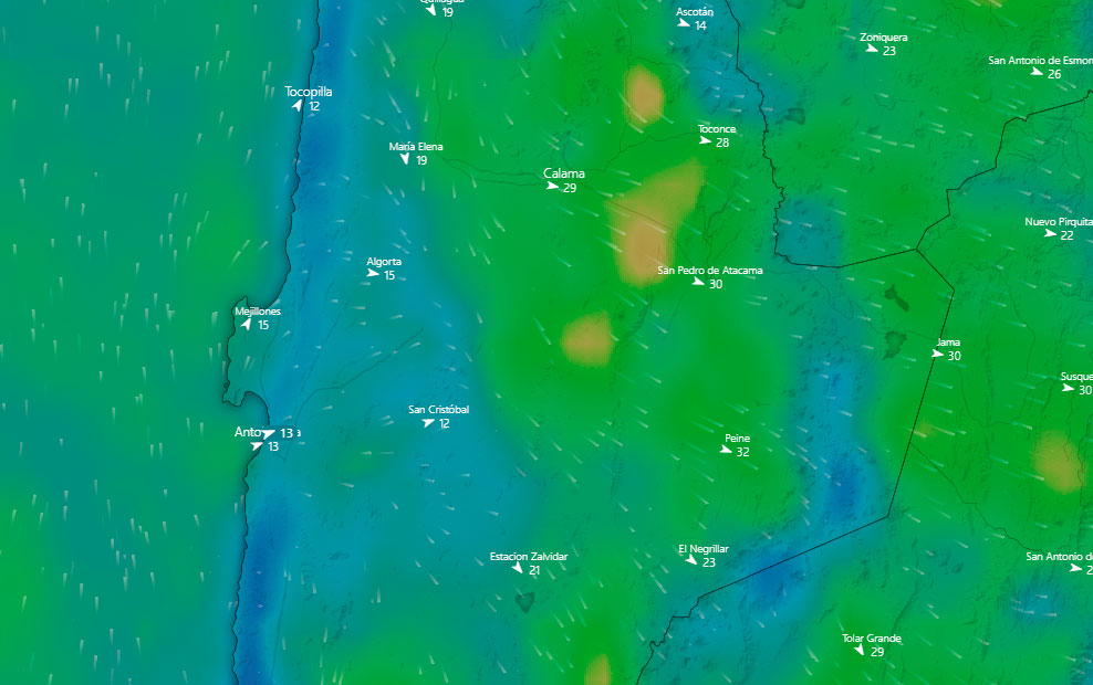 De acuerdo con la información proporcionada por la Dirección Meteorológica de Chile (DMC), mediante su Alerta Meteorológica CNA AA45/2020 emitida durante la presente jornada, se indica que durante mañana jueves 04 de junio, se registrará viento de intensidad moderada a fuerte en los sectores precordilleranos (entre 40 y 60 km/h, con ráfagas de 80 km/h) y cordilleranos (entre 70 y 90 km/h, con ráfagas de 100 km/h) de la Región de Antofagasta.
