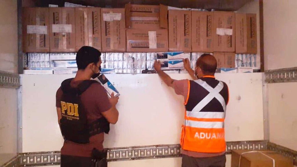 Un camión especialmente modificado para el contrabando de cigarrillos fue interceptado por funcionarios del Servicio Nacional de Aduanas y de la Policía de Investigaciones en Antofagasta. La detección se registró en el Kilómetro 37 de la ruta A-1 y permitió incautar 88 mil cajetillas de cigarrillos que tenían como destino Santiago.