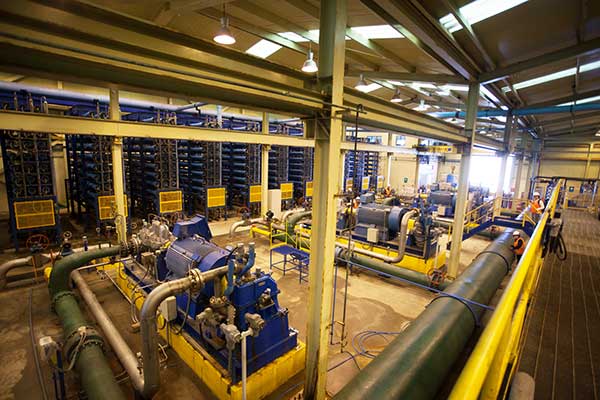 El color turquesa que se percibe en el agua no provoca ningún inconveniente en la producción de la Planta Desaladora Norte.