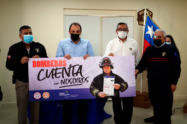 Aguas Antofagasta y el Cuerpo de Bomberos de Mejillones y Calama concretaron un nuevo convenio de recaudación que ayudará a generar aportes económicos a los voluntarios a través de la boleta del agua.