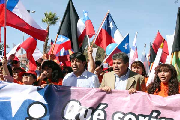 La movilización comenzó en el Parque El Loa y, tras recorrer las principales calles de la ciudad, culminó en el Parque José Saavedra, con un acto que encabezaron los dirigentes de la mesa social calameña, el diputado Marcos Espinosa y el alcalde y líder de la Asamblea Ciudadana, esteban Velásquez.