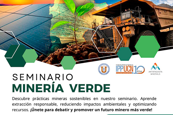 Con la presentación del libro “Chile, líder mundial en minería verde”, el Instituto de Políticas Públicas de la UCN y Antofagasta Minerals, invitan al seminario Minería Verde, el cual considera la participación de destacados académicos, autoridades y representantes de la empresa privada.