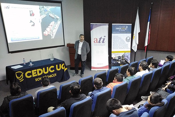 En el marco de la Semana de Ceduc, Antofagasta Terminal Internacional realizó una charla dirigida a los estudiantes de diversas carreras de la casa de estudios de la Universidad Católica del Norte. El gerente Gerente de Operaciones del terminal, Jorge Falcon, presentó a los jóvenes conceptos básicos sobre la logística portuaria, las operaciones del puerto y los avances en materia ambiental, entre otros temas.