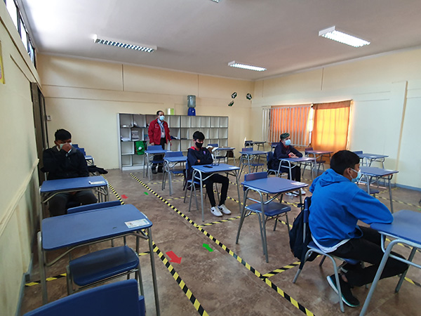En el primer día de clases, se pudo apreciar un aforo reducido en las salas de clases al igual que en los espacios comunes, donde la norma fue respetar el distanciamiento social.