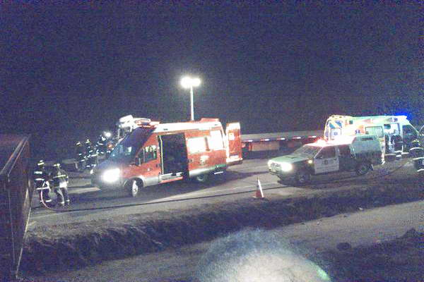 El comandante Espinoza, explicó que el accidente se produjo cuando un container se soltó del camión en que era trasladado, siendo impactado por otro camión que transitaba en sentido contrario.