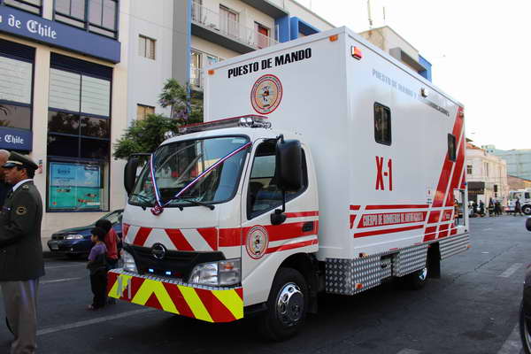 En una ceremonia presidida por el Intendente Arturo Molina Henríquez y por las máximas autoridades bomberiles de la ciudad, además de representantes de Carabineros, Municipalidad y el Director de ONEMI, el nuevo carro fue recibido. De manera simbólica Bomberos recibieron las llaves del vehículo, el cual cuenta con tecnología de punta y permitirá entre otras cosas, en caso de emergencia complejas ser el enlace directo entre el lugar donde se esté desarrollando el procedimiento y la Central de Alarmas.