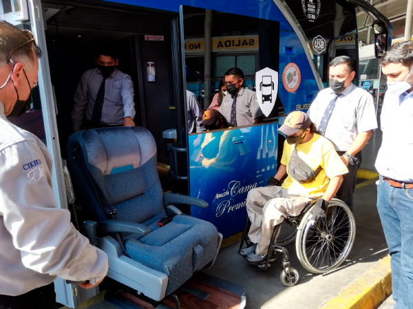 Daniel Zárate Rojo, tiene 48 años. Sufrió un grave accidente hace 10 años que lo dejó postrado en una silla de ruedas. Comenta que “siempre es dificultoso realizar un viaje en bus debido a la proeza que debo realizar para subirme”. Pues hoy ese problema se acabó para Daniel. La empresa Cikbus Elité presentó el primer bus interurbano inclusivo que cuenta con un sistema que proyecta el asiento hacia afuera y lo baja a nivel de suelo, reingresando y reposicionándose al interior del vehículo.