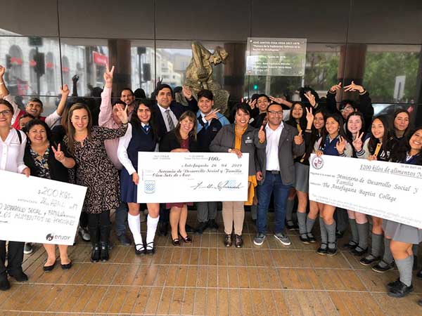 En el marco del Compromiso País, la actividad tuvo lugar en la Intendencia y la entrega correspondió a Enjoy Antofagasta, a través de su gerente general Rubén Ormazábal, quien llegó acompañado de dos crupier. A ellos se sumaron los directivos y estudiantes de The Antofagasta Baptist College y The Giant School.