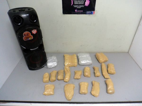 Dieciocho paquetes con un peso total de 4 kilos 590 gramos de marihuana detectaron fiscalizadores del Servicio Nacional de Aduanas al interior de un parlante. El artículo era transportado por un cantante que viajaba en un bus desde Arica a Santiago.