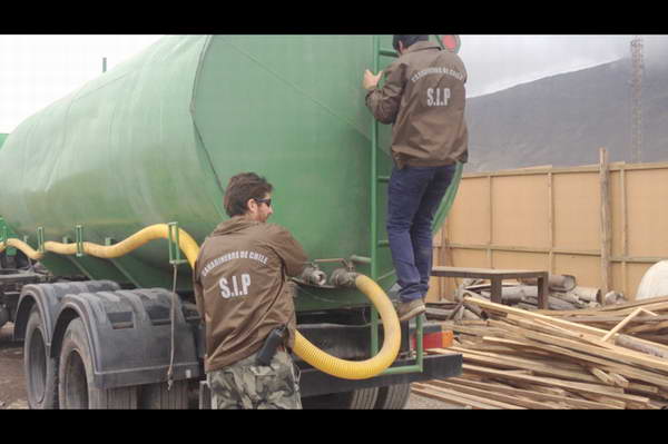 Para esto, habían instalado una llave especial en la tubería que les permitía conectarla a una manguera para cargar camiones aljibes de 15 mil litros de capacidad, lo cual se había instalado en dos terrenos tomados en el sector de la Chimba Alto.