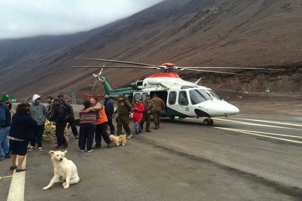 Ante esta emergencia Carabineros de Chile, inmediatamente dispuso la concurrencia de un moderno helicóptero cuya tripulación, al mando del mayor Mario Ramírez Salazar, tuvo como misión el rescate de las más de 200 personas que quedaron aisladas en lo largo de la Ruta 1 que une por la costa a dicha ciudad con Iquique y Antofagasta.