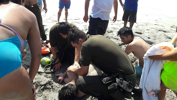 Una vez en el lugar se verificó que efectivamente una persona de sexo masculino se encontraba con riesgo de inmersión, no pudiendo salir del mar, por lo que personal de la tenencia ingreso siendo finalmente rescatado por él carabinero Braulio González Pérez de dotación de la segunda comisara de antofagasta, sacando finalmente al afectado a orilla de playa quien se encontraba semi inconsciente por lo que fue necesario practicar los primeros auxilios por parte de personal de carabineros, para finalmente ser trasladado a Mejillones sin riesgo vital y en óptimos signos vitales.