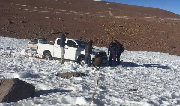 Hoy por ejemplo, señaló el capitán Toro, “tuvimos que concurrir con el fin de rescatar a cinco turistas que quedaron atrapados en la nieve al no conocer el camino que estaban recorriendo”.