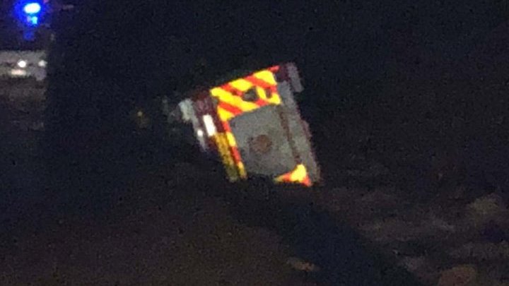 Al llegar los profesionales de la emergencia, rescataron a las personas que se encontraban en peligro y fueron subidas a la unidad bomberil, sin embargo al poner en marcha la unidad, la ribera del Río cedió y provocó el volcamiento del carro de bomberos.