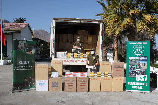 Este procedimiento llevado a cabo en conjunto con Carabineros del Retén Alemania, de la 1ª Comisaría de Taltal, se concretó cerca del kilómetro 1114 de la Ruta 5 Norte donde se fiscalizó al conductor de un camión, que se dirigía hacia el sur del país, efectuándose una inspección de la carga, que consistía en cajones fruteros. Sin embargo, tras de éstos Carabineros del OS.7 encontró una gran cantidad de cajas de cartón con cigarrillos de contrabando.