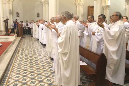 “ Porque nos hace bien renovar en conjunto las promesas para animarnos unos a otros, nos hace bien comprometernos ante el Señor, y así evitar que el trabajo diario del día a día de ser Sacerdote se trivialice sólo en la mecánica, como celebrar misas, dar la Comunión, dictar clases de Catequesis, etc. Y no olvidarnos que es nuestra vida la que está consagrada al Señor”, explicó.