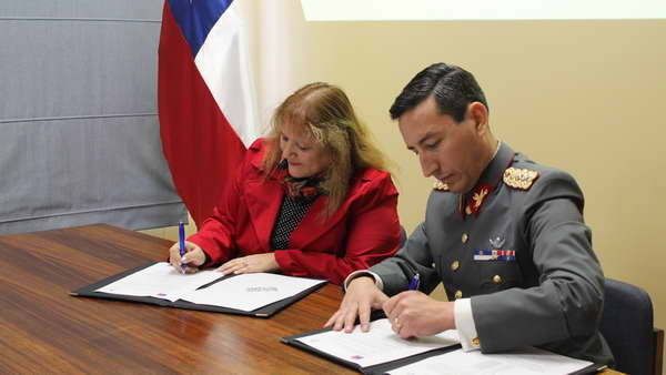 Elba Varas Espinoza, directora zonal norte de Fonasa y el teniente coronel Luis Cámpora Oñate, director del recinto hospitalario, sellaron un acuerdo en el que los asegurados del Fondo Nacional de Salud podrán acceder a la compra de su correspondiente bono en el Hospital Militar del Norte.