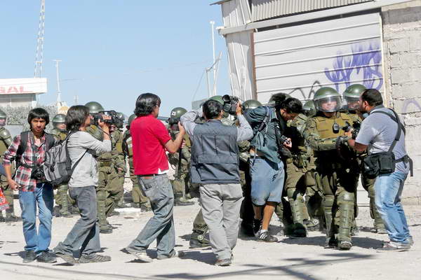 Recibieron directamente gas lacrimógeno, como lo ocurrido al equipo de TVN; una periodista de La Estrella del Loa fue golpeada; algunos gráficos tuvieron pérdida total de sus implementos de trabajo al ser rociados por el carro lanza aguas y en general todos los corresponsales radiales y de medios de televisión tanto local como nacional fueron agredidos.