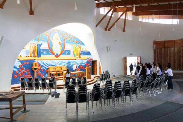 En su interior destaca, un mural que adorna el altar donde se realiza la misa, “pintura que fue realizada por el reconocido pintor iquiqueño Mauricio Serra, quien recogió el enfoque queríamos darle a este espacio y nos entregó una propuesta que es la que plasmó con su magistral pincel en este hermoso mural que se concretó después de 22 días.”, reafirmó el clérigo.