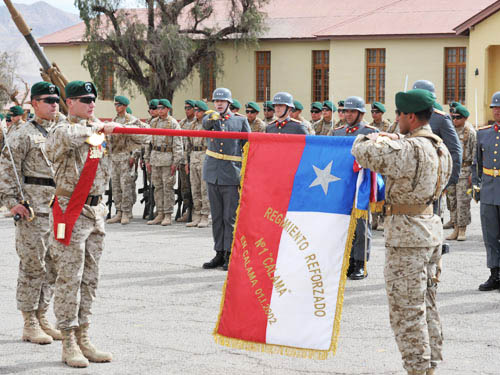 Este lunes 9 de junio, ante la presencia de familiares y amigos, 208 integrantes de la institución sellaron su compromiso de servicio a la Patria, con el Juramento a la Bandera que realizaron en el Regimiento Reforzado Nº 1 “Calama”, de la ciudad del mismo nombre, en un acto que fue presidido por el Ministro de Defensa, Andrés Allamand Z., acompañado por el CJE, GDE, Juan Miguel Fuente-Alba P.