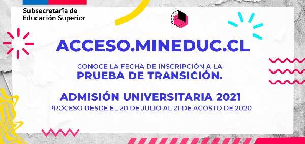 20 de julio de 2020.- En el marco del Nuevo Sistema de Acceso a la Educación Superior, hoy comenzó la inscripción a la Prueba de Transición para la admisión universitaria 2021, la que se extenderá hasta el próximo 21 de agosto. A través del nuevo portal acceso.mineduc.cl los estudiantes de IV Medio y todos aquellos que quieran postular a las 43 universidades adscritas al Sistema podrán inscribirse para rendir la prueba que reemplazará a la PSU y que evaluará no solo conocimientos, sino que también, de forma paulatina, competencias.