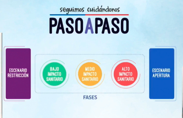 El subsecretario Cristóbal Cuadrado añadió que “a estas tres fases se suman dos escenarios extremos que responden a grandes cambios en el contexto pandémico a nivel mundial: uno muy desfavorable, el escenario de Restricción, y otro muy favorable, el escenario de Apertura”.