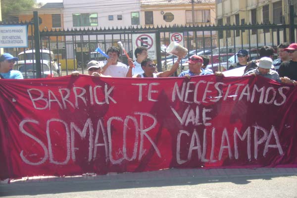 Asimismo , Roberto Arriagada, del sindicato de Minera Escondida y director de la Federación Minera, realizó un llamado a la empresa Barrick Zaldívar para “que intervenga en el conflicto para que de esta forma se pueda , en el más breve plazo, constituir una mesa de diálogo que permita buscar una solución a la paralización de los trabajadores de Somacor”.