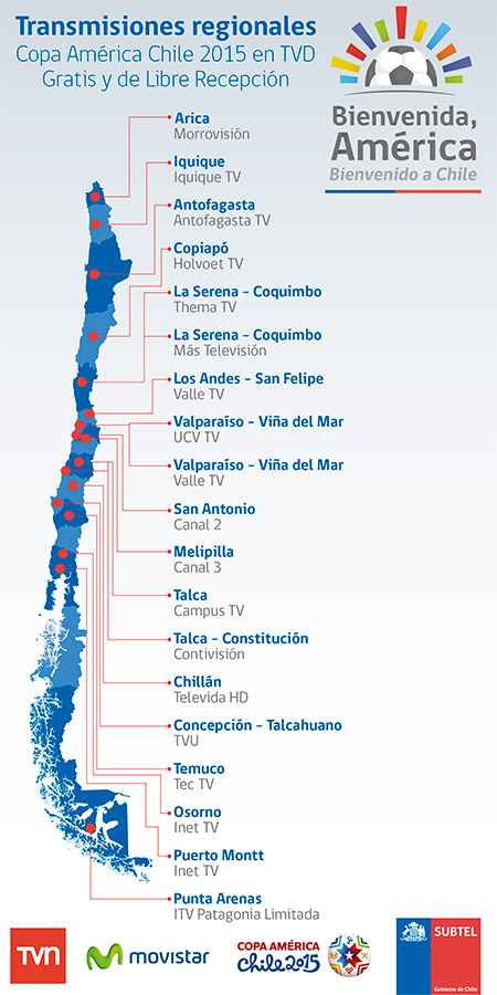 El Subsecretario de Telecomunicaciones, Pedro Huichalaf, agregó que “la Subsecretaría de Telecomunicaciones es el organismo técnico encargado del despliegue y de la difusión de la implementación de la Televisión Digital en todo el país, y este convenio en el marco de la Copa América es una tremenda oportunidad para que todos los chilenos conozcan los beneficios de la TVD, como son su mejor calidad de audio, imagen y lo más importante es que es gratis y de libre recepción”.