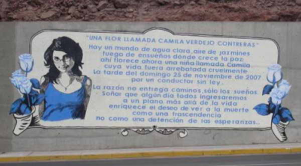 Como “víctima del descriterio de una agrupación política” calificó Daniela Verdejo la acción del partido Revolución Democrática de Antofagasta a quienes denuncia por borrar parte del tradicional mural que homenajeaba a Camila Verdejo (Q.E.P.D) en la subida de la Coviefi. Joven que falleció el 25 de noviembre del 2007 tras ser atropellada por un conductor en estado de ebriedad y cuyo caso generó gran conmoción en la ciudad.