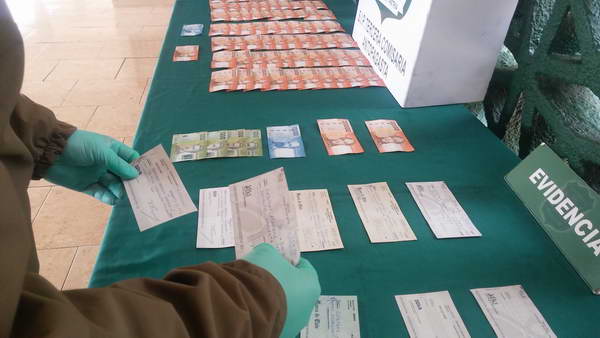 Los tres hombres, que registran un amplio prontuario policial y penal, identificados como LGVF (34) CERA (32) y JGSS (25) reclutaban personas a quienes le cancelaban un porcentaje del monto de los cheques y de esta manera antes de ser detenidos ya habían cobrado en Antofagasta y Calama Un millón 450 mil pesos, dinero que fue incautado en las diligencias.