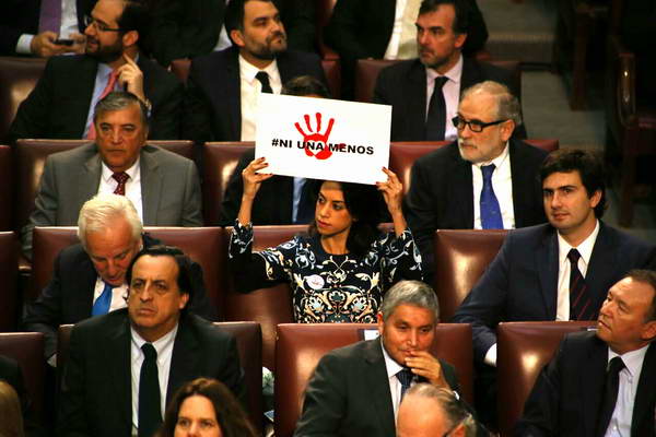 Consultadas sobre los carteles, que junto a sus pares de Vamos Mujer, levantaron en el marco del Mensaje Presidencial con la consigna #NiUnaMenos, señalaron que “hemos venido a esta Cuenta Pública para de que ninguna mujer más sea asesinada en este país”.