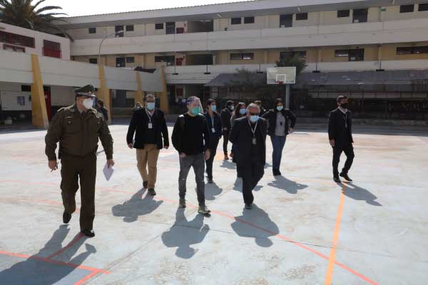 Hasta el Liceo Comercial Jerardo Muñoz A-12, llegó el Secretario General de Corporación Municipal de Desarrollo Social (CMDS), Arturo Molina, junto al Director de Salud de CMDS, Wilfredo Montoya y el Teniente Coronel Álvaro Muñoz, Subprefecto de los Servicios de Carabineros de Antofagasta, para realizar una visita inspectiva a este establecimiento educacional que a partir del miércoles 5 de agosto se convertirá en un verdadero centro de operaciones para las consultas, guía y realización del trámite de solicitud del 10 % de los ahorros previsionales. En este liceo, ubicado en pleno centro de la ciudad, se atenderá de 9.00 a 17.00 horas y se dispondrán 66 mesas para la atención de público que representarán a las AFP: Capital, Cuprum, Habitat, Modelo, Planvital, Provida y Uno.