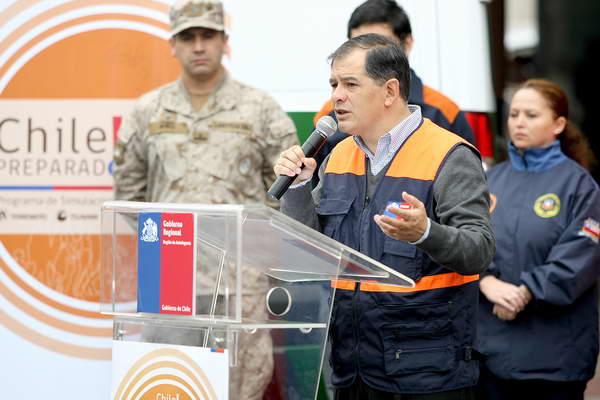 El Intendente Regional de Antofagasta, Pablo Toloza, junto al Director Regional de Onemi Antofagasta, Mario León, encabezaron la ceremonia de lanzamiento del simulacro de terremoto y tsunami, en el marco del ejercicio de la macrozona norte del país. Iniciativa que espera movilizar a 100 mil personas, aproximadamente, que viven y trabajan en el borde costero de Tocopilla, Mejillones, Antofagasta y Taltal.