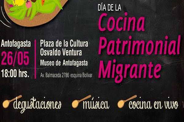 La Gastronomía se entiende como el arte de comer bien, de saber apreciar la comida, o como el arte de cocinar para proporcionar mayor placer a los que comen; la Seremi de las Culturas, Arte y Patrimonio, Gloria Valdés señaló: “Hemos decidido en esta ocasión hacer una acción diferente que se suma a la apertura de todos nuestro patrimonio urbanístico en las nueve comunas, lo que haremos este sábado por la tarde, es mostrar a los antofagastinos que nuestra multiculturalidad es parte de nuestro patrimonio #Estamoshaciendohistoria con los migrantes, su cocina, recetas, estudiantes y con todos aquellos que interactúan en el proceso creativo de la cocina”.