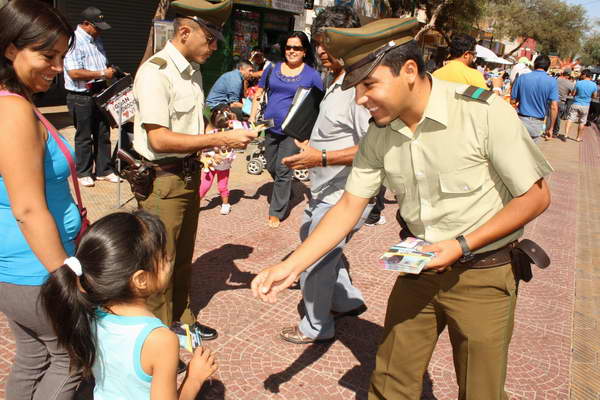 Información de este tipo y orientaciones para disipar dudas de los peatones, fue el tenor de la jornada de promoción de la denuncia, que realizaron esta mañana, las policías de Investigaciones y Carabineros, junto al equipo del Programa de Seguridad Pública del gobierno provincial.