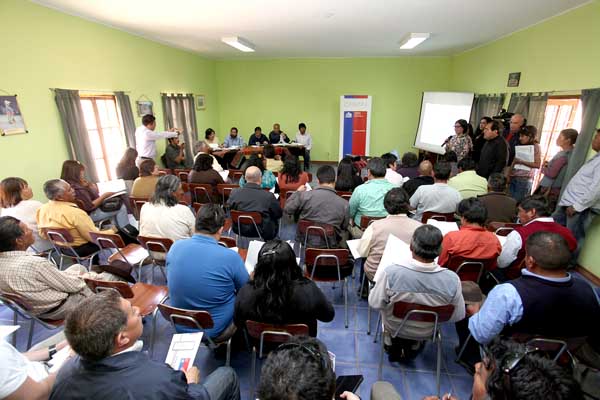 Estas nuevas reuniones de trabajo fueron encabezadas por el Intendente Regional y Presidente del Consejo Directivo, Pablo Toloza, junto a los Seremis de Desarrollo Social, Miguel Araviri; Bienes Nacionales, Christian Berndt; Obras Públicas, Rodolfo Gómez y Agricultura, Gerardo Castro; además de Directores de Servicios Públicos y dirigentes de las comunidades indígenas.