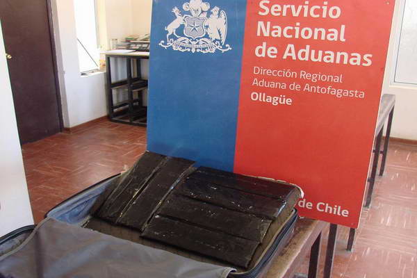 La droga la transportaba el chileno M.R.A., de 49 años, quien viajaba desde Bolivia. El sospechoso portaba una maleta cuyo peso llamó la atención de los funcionarios de la Unidad de Drogas de la Aduana Regional de Antofagasta.