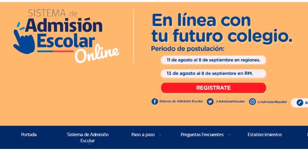Hoy comienza la postulación en el sistema de admisión escolar, la cual debe hacerse a través de la plataforma www.sistemadeadmisionescolar.cl, a partir del 11 de agosto en todas las regiones con excepción de la Metropolitana, que inicia su proceso el 13 de agosto. En este proceso participarán 8.036 establecimientos educacionales a nivel nacional, los que ya reportaron sus cupos.