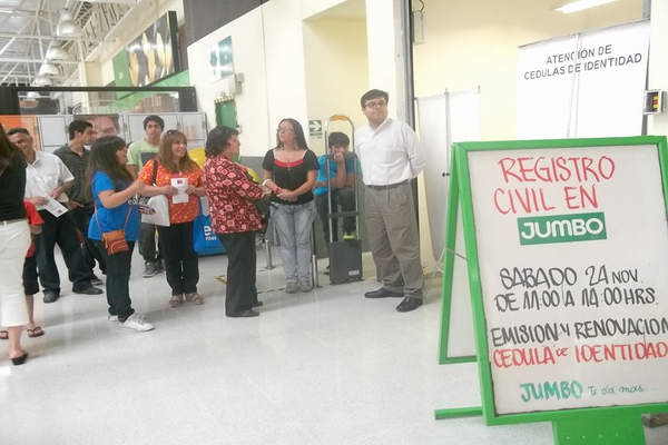 En esta oportunidad  con la colaboración de supermercados Jumbo, este sábado  8 de diciembre, a partir de las 11 de la mañana hasta las 13 horas al interior del recinto en Avenida Angamos 745-777,  se invita para   que la ciudadanía,  pueda realizar el trámite de solicitar la cédula de identidad, para esto, tres funcionarios del registro civil estarán situados al interior del supermercado y así,  facilitar y agilizar un trámite que para muchos se debe a la falta de tiempo dentro de la semana,  y de esta forma puedan ver facilitada la opción de solicitar su cédula este sábado 8 de diciembre.