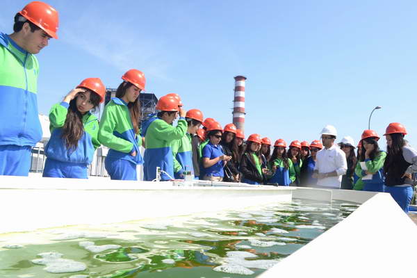 Más tarde, a bordo de los Móvil Tour 1 y 2, los jóvenes recorrieron las unidades generadoras y el proyecto Microalgas, del Consorcio AlgaeFuels, donde participa E-CL en forma relevante. Allí, los profesionales Ángela Alburquenque, Juan Pablo Carrasco y Marcela Martínez, expusieron los mecanismos científicos aplicados al cultivo y análisis de diversas especies o cepas de microalgas para la producción de biodiesel.