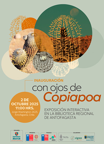 En tanto, María José Riveros, directora de Extensión de la U. Mayor y quien también participó en el proyecto, comenta que “la exposición ‘Con ojos de Copiapoa’ es un trabajo colaborativo y de redes, que promueve la valoración del patrimonio natural y cultural. Además, es nuestro aporte a un problema real como es la conservación de especies y ecosistemas en peligro, gracias al poder del arte y la investigación científica reunidos”.