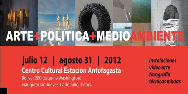 Centro Cultural Estación Antofagasta (CCEA) presentará durante los meses de julio y agosto, una interesante exposición titulada “Arte, Política y Medio Ambiente”. La exhibición, conjuga las más diversas expresiones de las artes plásticas en una muestra que compila video arte, objetos, caligrafía y fotografía, con sonidos y luces en las creaciones de cinco artistas: Arcángel Constantini y Karen Perry, de México; Mohamed Abou El Naga, de Egipto; Andrea Juan, de Argentina y Dagmara Wyskiel, de Polonia. La exposición se lleva a cabo gracias a la aprobación del proyecto del Centro Cultural Estación Antofagasta por la Ley de Donaciones Culturales, el auspicio de Ferrocarril de Antofagasta y la producción del Colectivo se Vende. “Arte, Política y Medio Ambiente” estará abierta a partir del 13 de julio hasta el 31 de agosto, el horario de visita es de lunes a viernes de 09:00 a 19:00 horas, sábado, domingo y festivos de 10:30 a 20:30 horas, su entrada es gratuita y liberada.