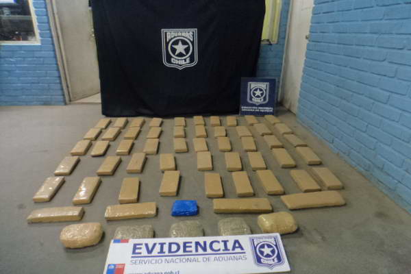 Luego de realizar las pruebas de campos correspondientes, los funcionarios de la Unidad de Drogas de la Aduana Regional de Iquique identificaron 53 bultos correspondientes a 45 kilos de marihuana y otros 5 paquetes con 4 kilos 60 gramos de pasta base de cocaína.