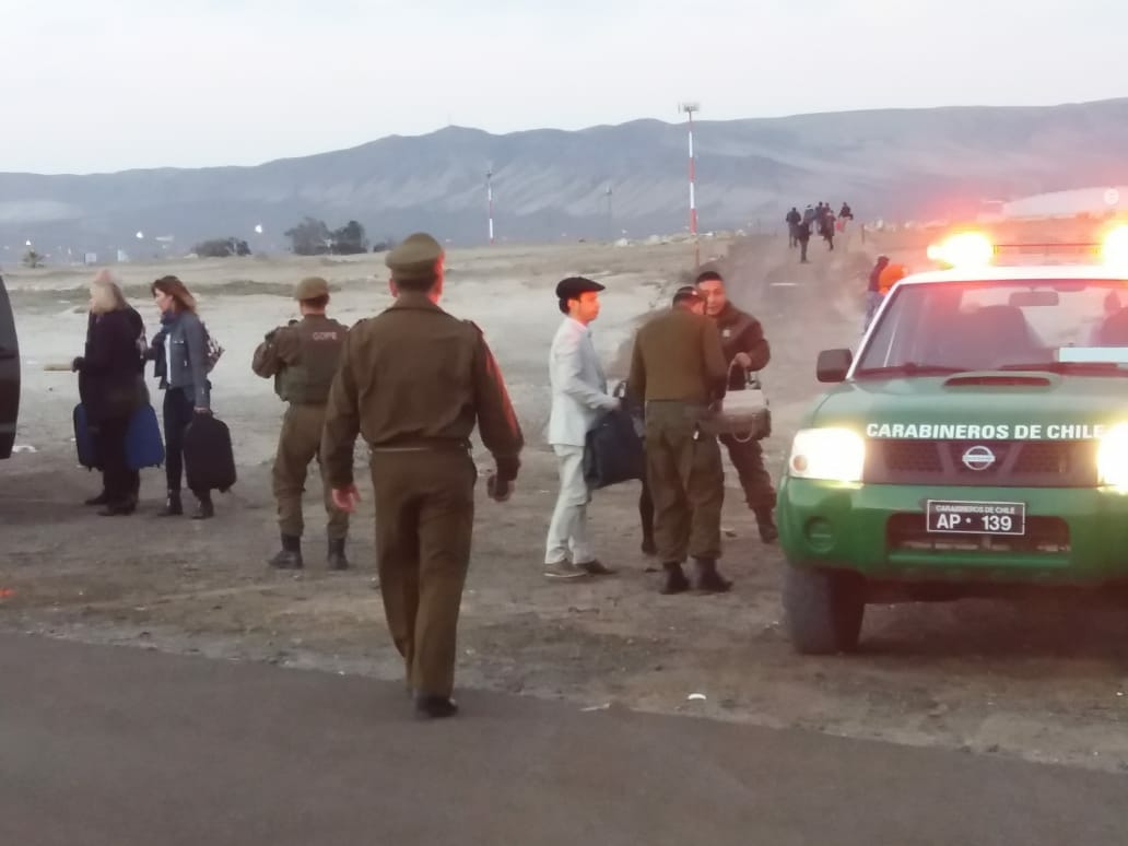 Vuelos que aterrizaron en Antofagasta y corresponden al LAN 138 y LXP 324 los que están siendo revisados por personal de GOPE de carabineros en una zona de Seguridad, sin pasajeros a bordo, al momento se está revisando el equipaje para descartar completamente la presencia de algún artefacto explosivo.