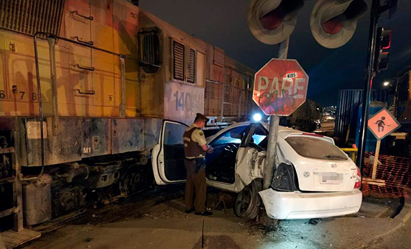 Este jueves 1 de julio a las 18:10 horas, un vehículo particular colisionó un tren en la intersección de avenida Héroes de la Concepción con calle Juan Bolívar, en el sector norte de Antofagasta, provocando que la locomotora quedara obstaculizando la vía.