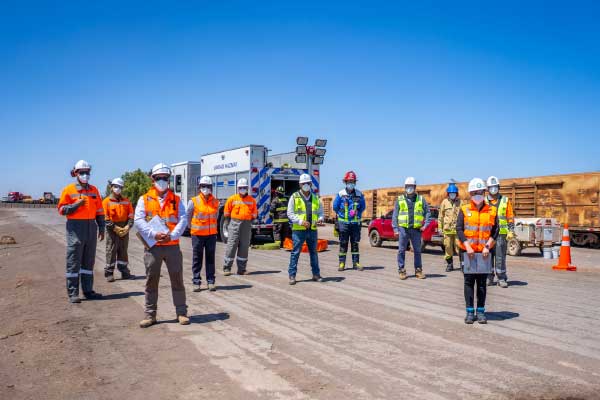 Rodrigo González Cortes, especialista MATPEL del FCAB, indicó que “este tipo de simulacros nos permite verificar nuestra capacidad de reacción y atención de incidentes con las cargas que transportamos, como en este caso, derrames de concentrado de cobre. Con la realización de esta actividad se da cumplimiento a lo comprometido en la Resolución de Calificación Ambiental que tenemos para el transporte y traslado de concentrado de cobre de Minera Sierra Gorda, sin dejar de lado el cuidado de las comunidades donde operamos”.